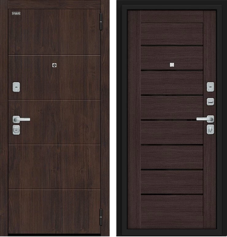 Надежная входная Дверь Браво Прайм/BChrome Almon/Wenge Melinga премиум класса по цене 39 459 руб. Большая толщина стали защитит от проникновения в ваш дом, квартиру или коттедж. Используется очень качественная фурнитура: замки, цилиндры, ручки, защелки. Покрытие и отделка двери изготовлено под внимательным контролем производителя. Дверь имеет долгий срок службы и гарантию.